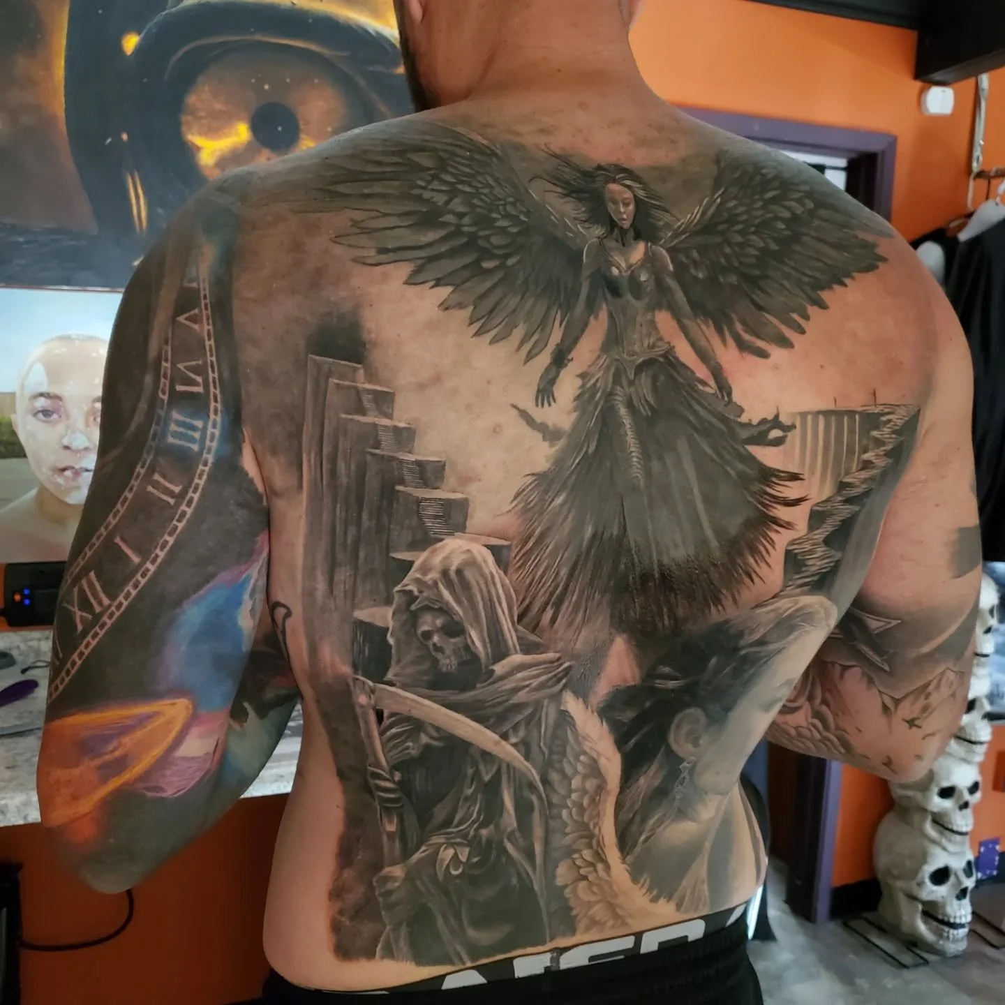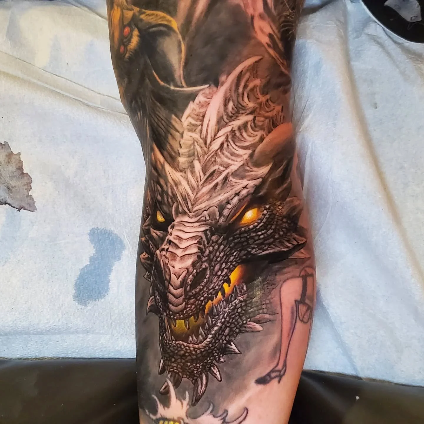 jeromy has been tattooing for 23 years and specializes in horror, fantasy, realism, comic book, anime, and movie character tattoos.