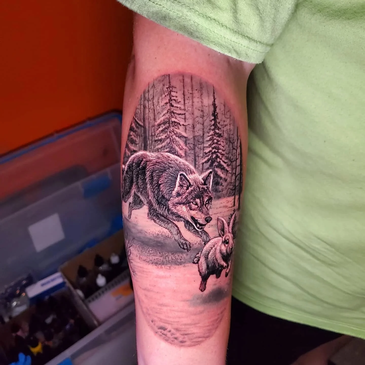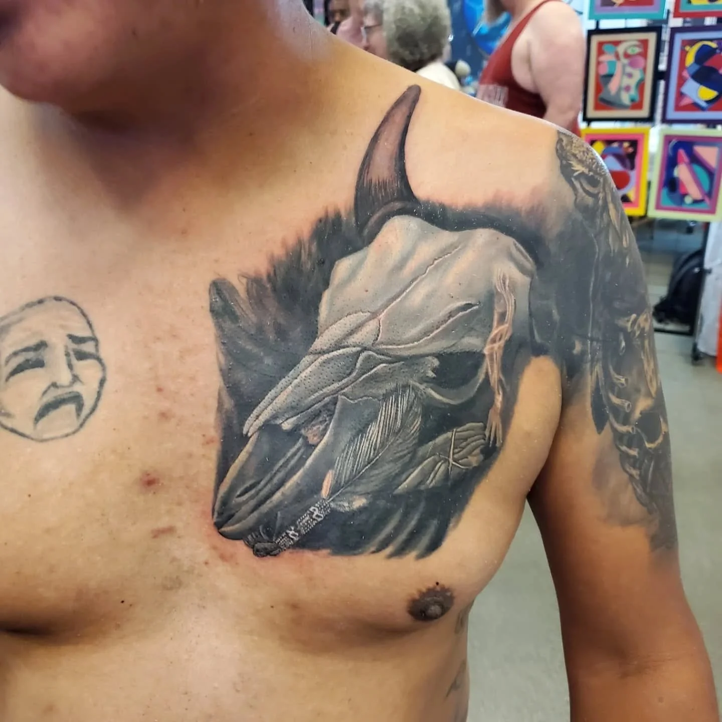 I TRULY HAVE THE BEST JOB IN THE WORLD, AN OUTLET FOR MY PASSION IN ART. A FEW YEARS AGO I DECIDED TO PURSUE MY MID LIFE CRISIS GOAL….TATTOOING! EVERY DAY I GET TO MEET COOL NEW PEOPLE, AND HOPEFULLY MAKE SOMEONE’S DAY. I SPECIALIZE IN DARK REALISM, HOWEVER I ENJOY TATTOOING MANY DIFFERENT STYLES.